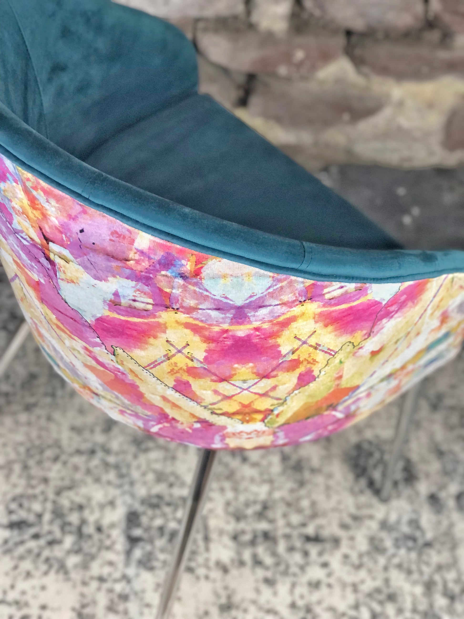 This pair of contemporary curved chairs are ready to give your house a little bit of sunshine indoors. Covered on the back in our Cumbria/Mountain inspired print Helvellyn (Summit) these will add the statement factor to any room you showcase them in.