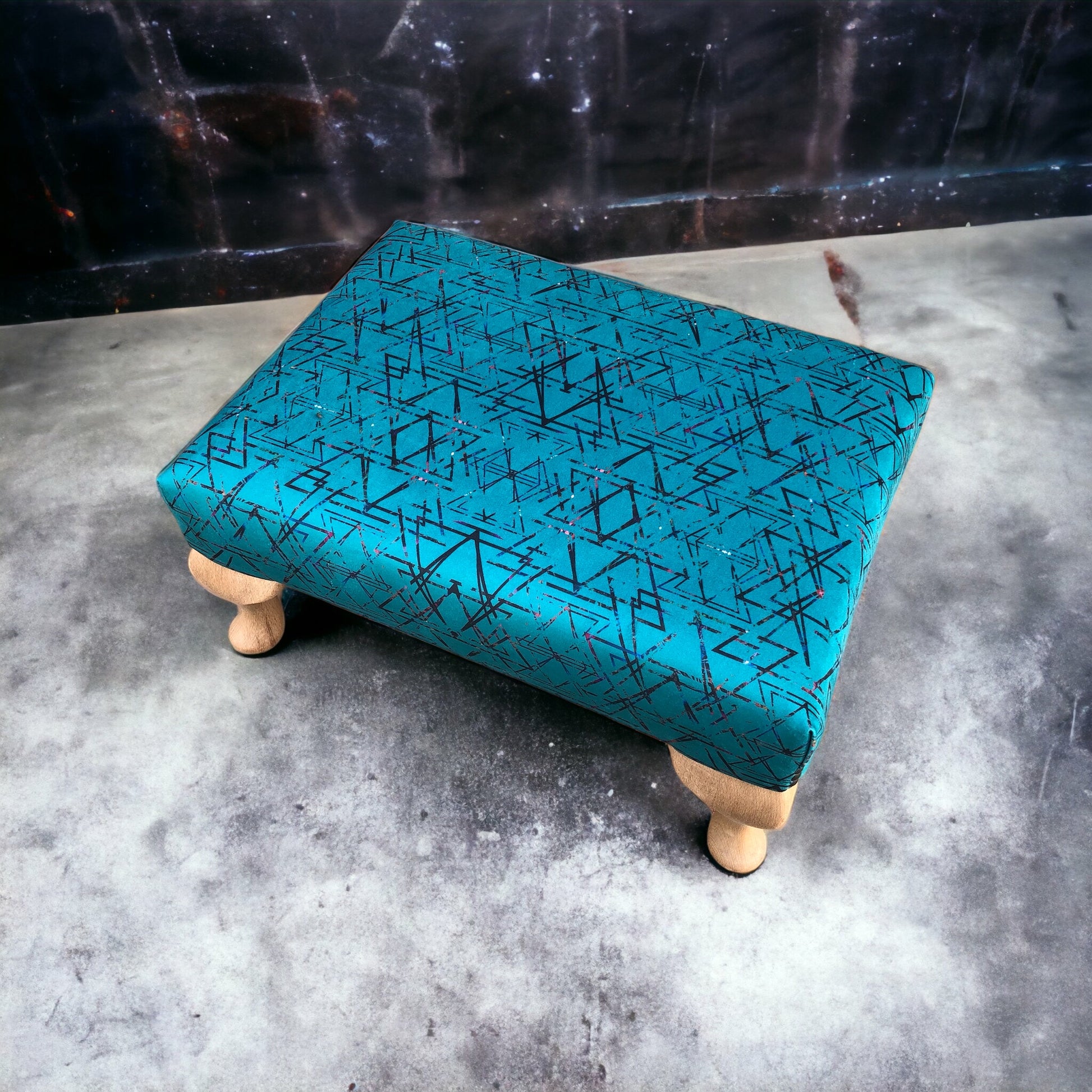 A 'reserved maximalist' design (well for us anyway) contrasting a strong background colour with a geometric coloured sparkly pop throughout.